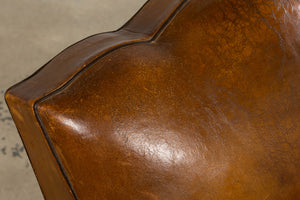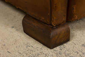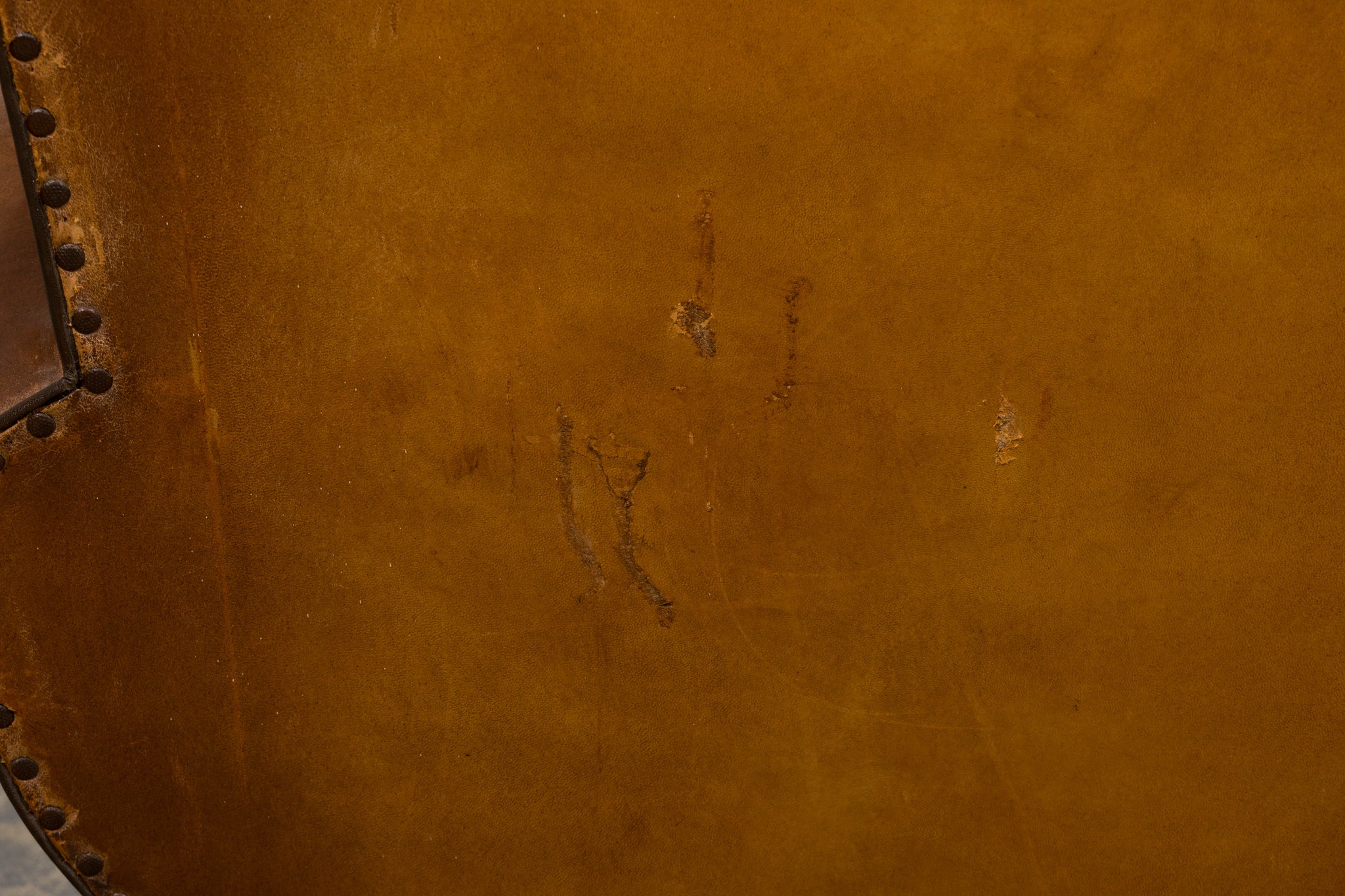 - Condition: Solid and stable with structurally sound frames; original leather displays a warm aged patina with creasing, scuffs, and wear consistent with age, including some old repairs and surface marks that add to the authentic character.