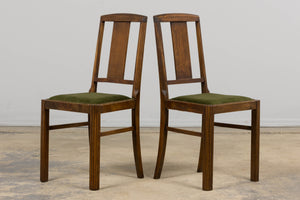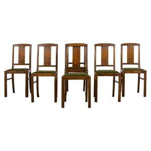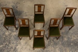 1930s French Art Deco Maple Dining Chairs W/ Olive Green Velvet - Set of 6