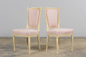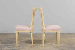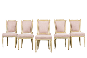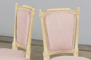 Antique French Louis XVI Style Painted Dining Chairs in Blush Pink - Set of 6