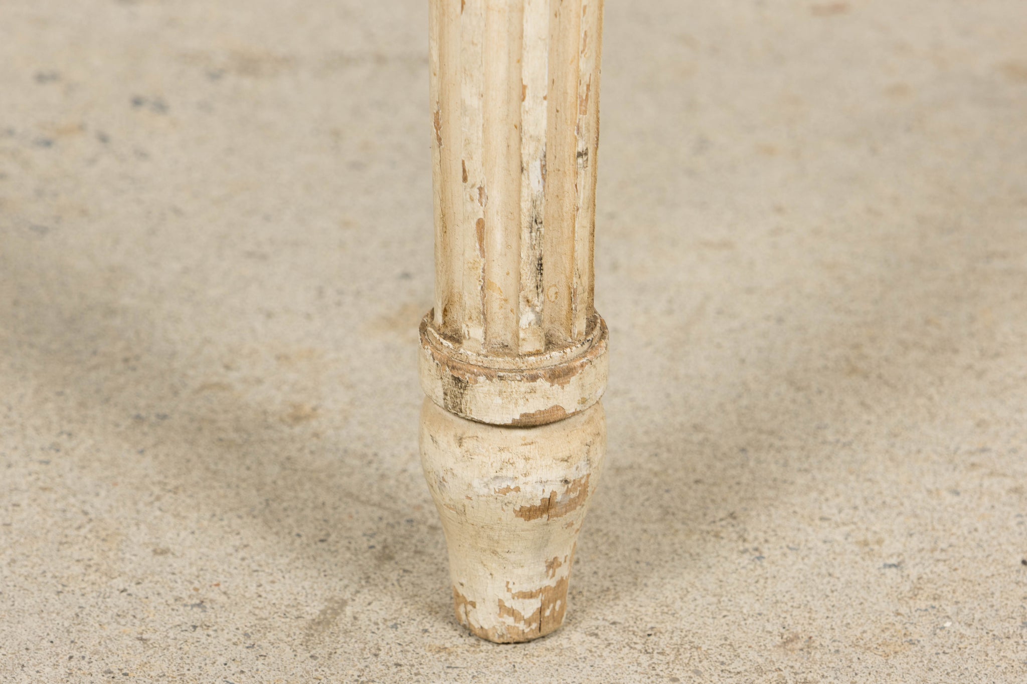 - Condition: Structurally sound. Original painted finish with naturally aged patina. Newly upholstered in Italian olive green leather.