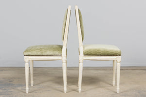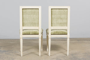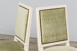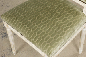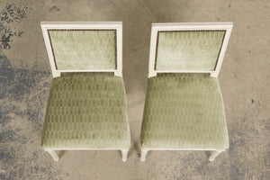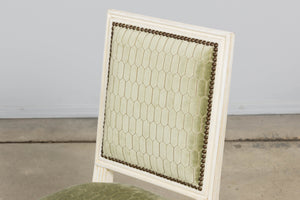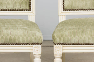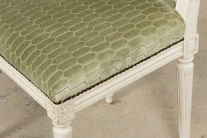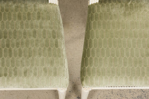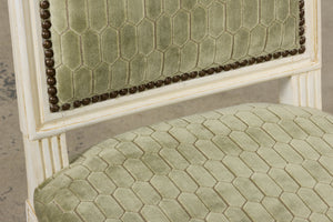 Antique French Louis XVI Style Painted Side Chairs W/ Green Geometric Velvet – A Pair