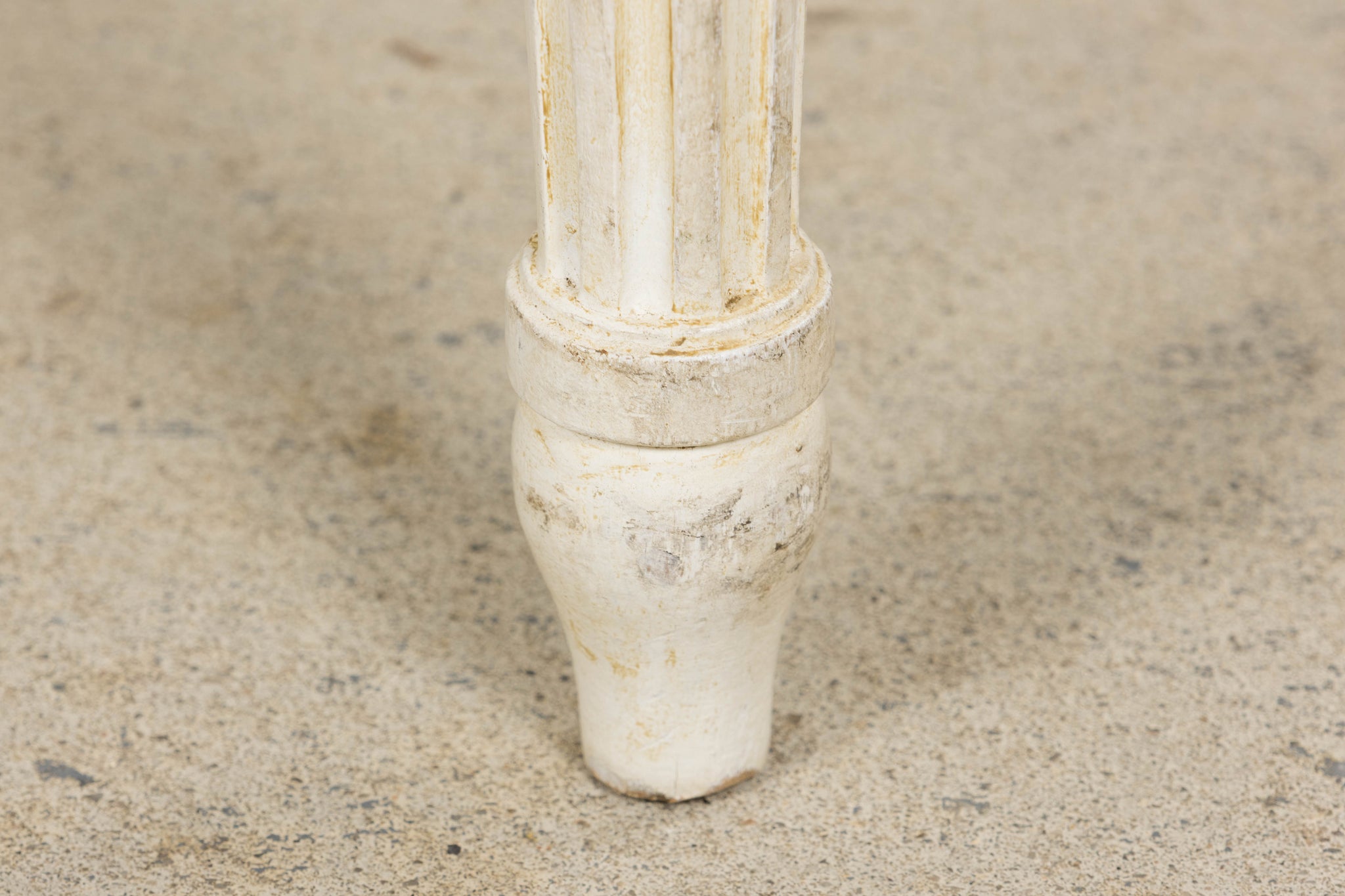 - Condition: Structurally restored and stable. Frames show age-appropriate wear to the painted finish, including light rubbing and surface patina consistent with age. Newly reupholstered.