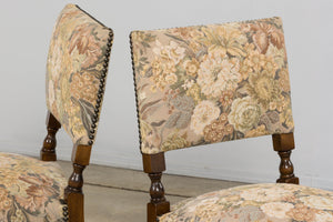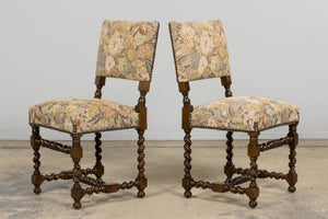 French Louis XIII Style Oak Barley Twist Dining Chairs W/ Floral Tapestry - Set of 8
