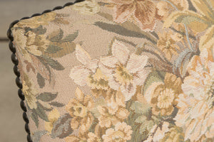 - Condition: Structurally revised and stable. Original tapestry upholstery shows light, age-appropriate wear consistent with use. The wood has been polished and presents well.