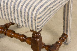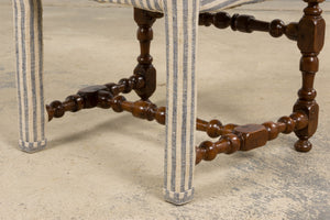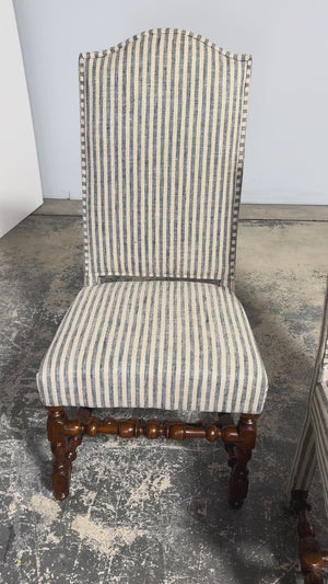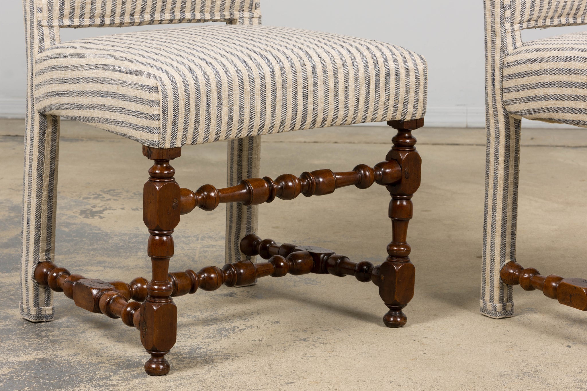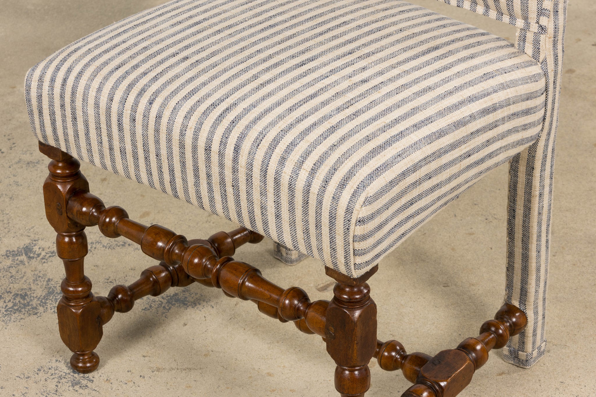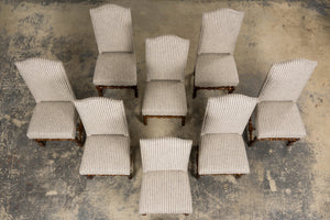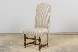Antique French Louis XIII Walnut Dining Chairs in Tailored Stripe - Set of 8