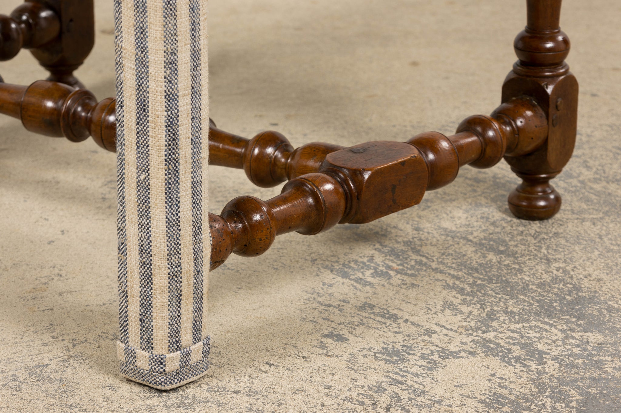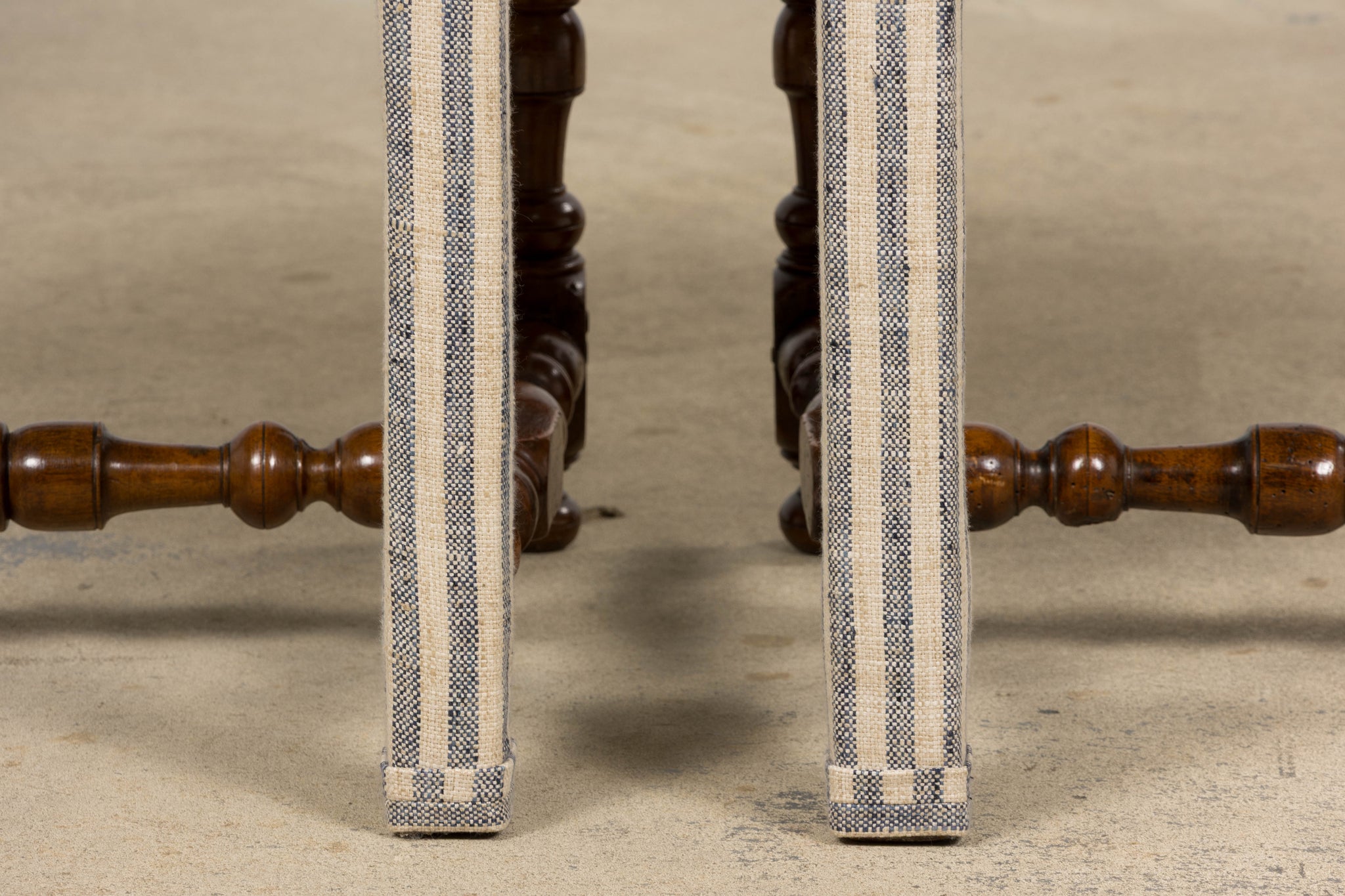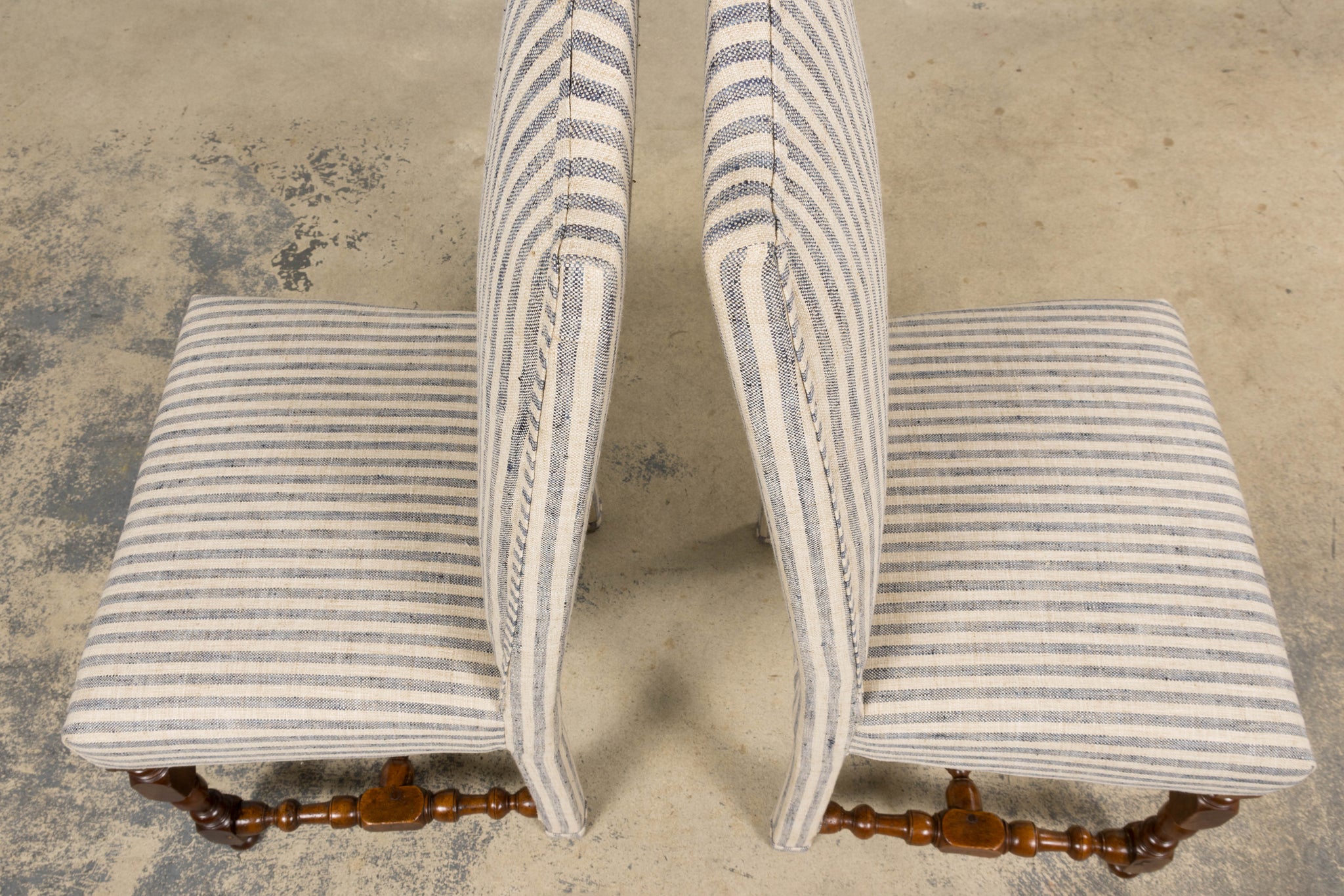 Antique French Louis XIII Walnut Dining Chairs in Tailored Stripe - Set of 8