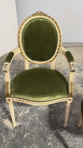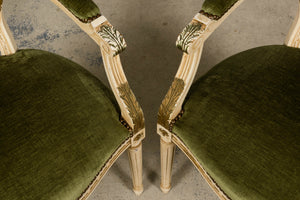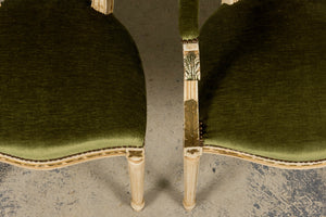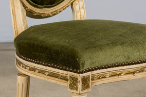 Antique French Louis XVI Style Dining Chairs in Olive Green Velvet - Set of 8