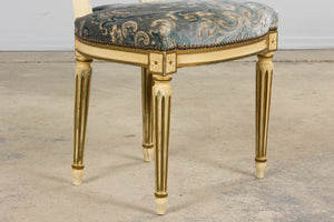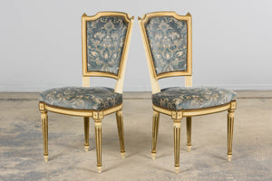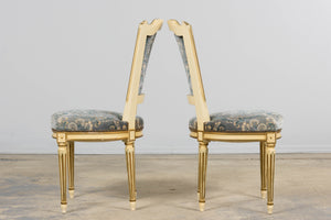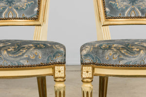 Antique French Louis XVI Style Painted Side Chairs W/ Blue Velvet Damask – A Pair