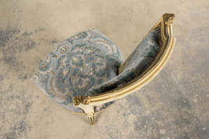 - Condition: Structurally revised and stabilized. Frames are solid and stable. Original painted finish and original velvet damask upholstery retained, showing light wear consistent with age.