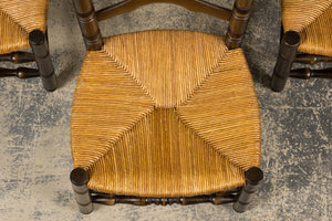 - Condition: Structurally revised and newly waxed, with rush seats cleaned and shellacked; light age-appropriate wear remains consistent with early 20th-century craftsmanship.
