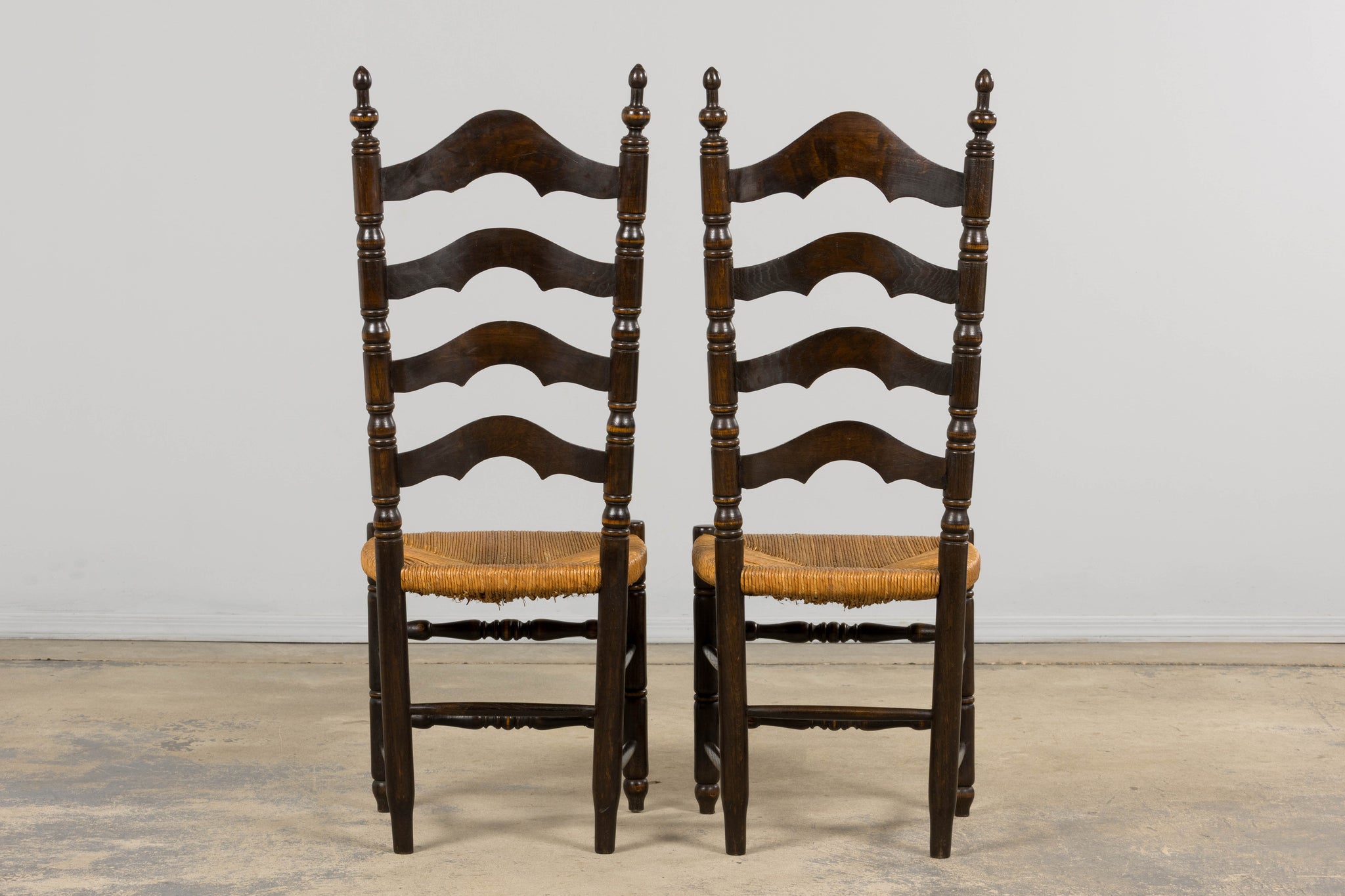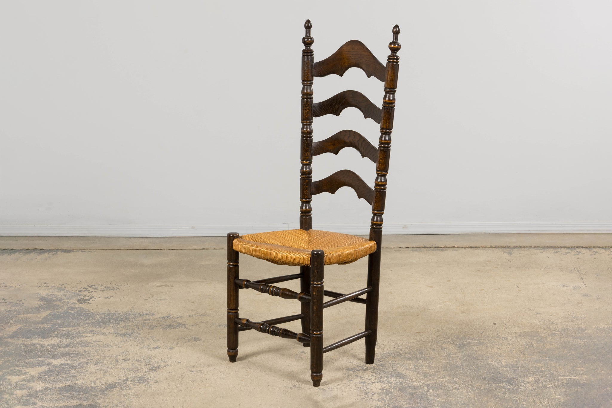 Antique Spanish Country Oak Ladder Back Rush Seat Dining Chairs – Set of 10