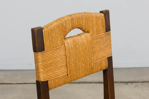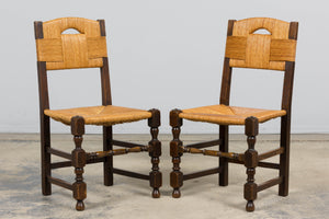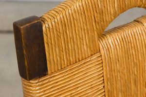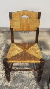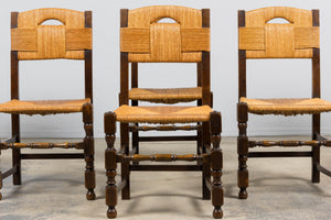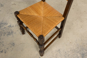 Antique French Provincial Oak Rush Seat Dining Chairs - Set of 6