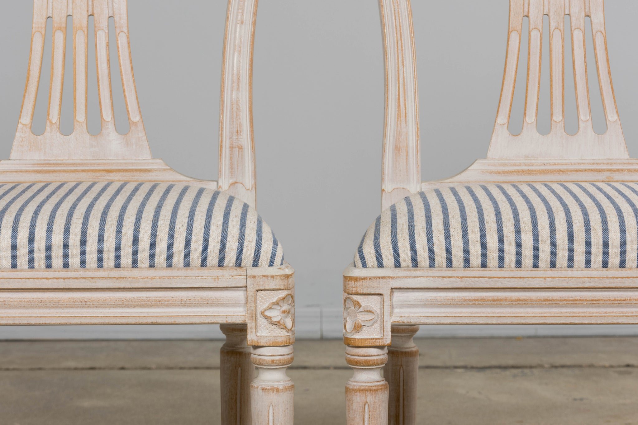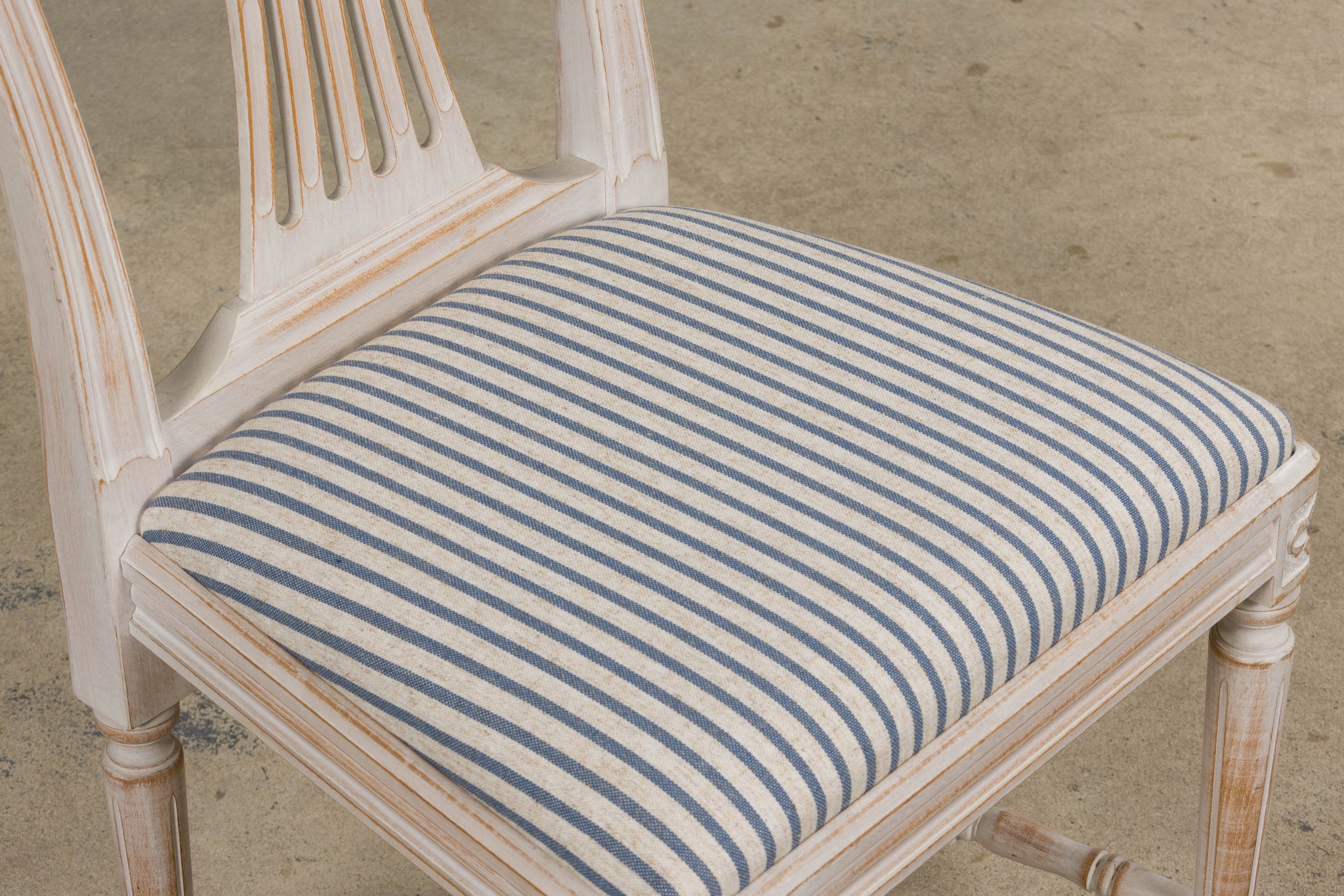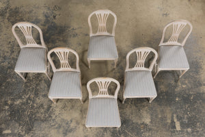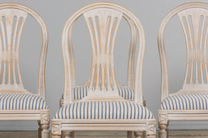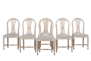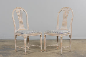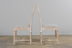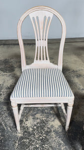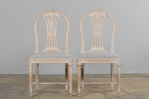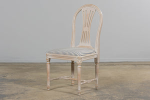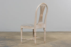 French Louis XVI Style Painted Dining Chairs W/ Striped Linen - Set of 6