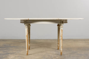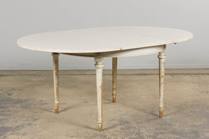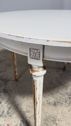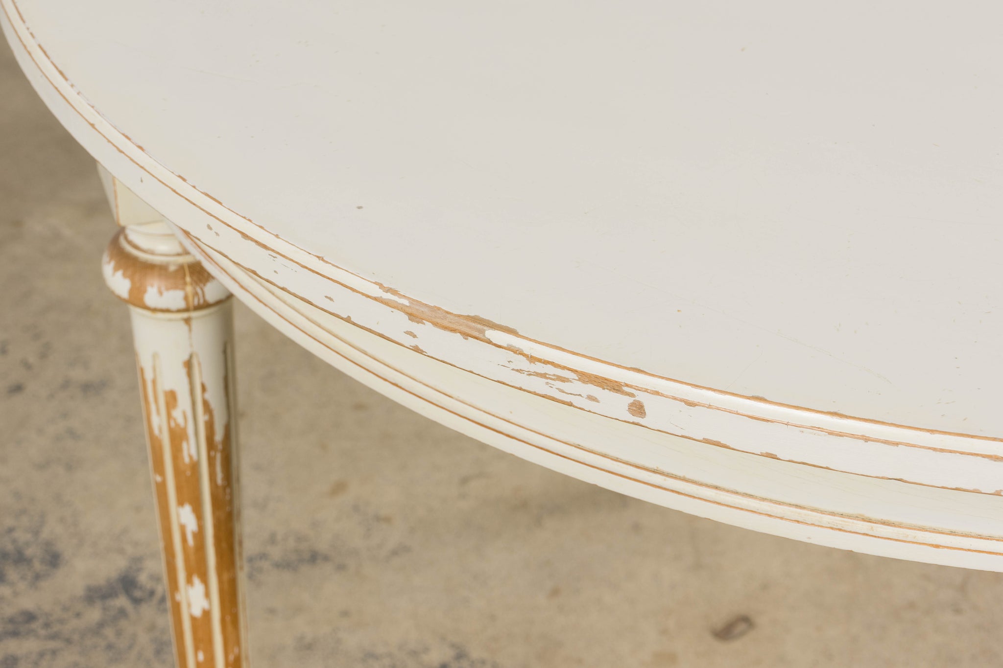 French Louis XVI Style Painted White Off-Round Extendable Dining Table
